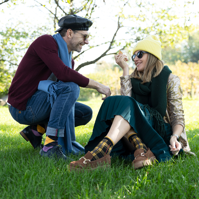 Sempre in linea con le tendenze del momento, le nostre menti creative fluttuano nell’universo di colori e forme, a volte si scontrano e si rischia il big bang, ma nascono creazioni che spaziano dagli intramontabili classici righe, pois e rombi…a calzini che parlano di passioni, che prendono in giro, che provocano o che fanno tenerezza.