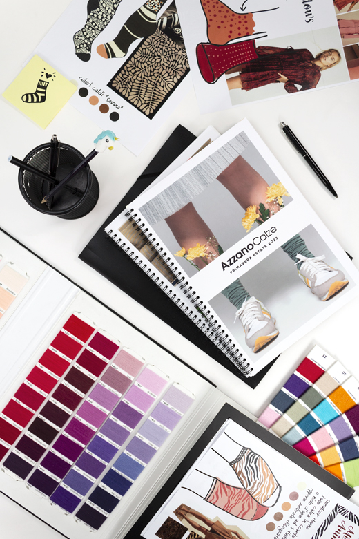 Realizziamo il design della calza totalmente da zero e lo facciamo con dei software specifici che ci permettono di avere una proiezione realistica e un controllo totale di come sarà il prodotto finito, ma soprattutto di esprimere tutta la nostra creatività.